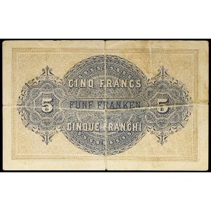 SUISSE - SWITZERLAND 5 franken (langue allemande) 10 août 1914.
