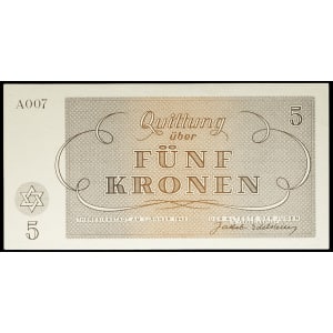 TCHÉCOSLOVAQUIE - CZECHOSLOVAKIA 5 kronen - ghetto de Theresienstadt 1er janvier 1943.…