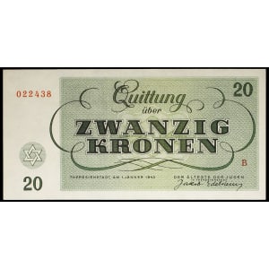 TCHÉCOSLOVAQUIE - CZECHOSLOVAKIA 20 kronen - ghetto de Theresienstadt 1er janvier 1943.…