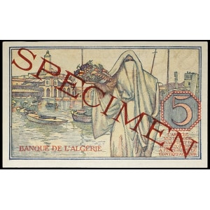 ALGÉRIE - ALGERIA 5 francs, type modifié (SPÉCIMEN) 8-2-1944.