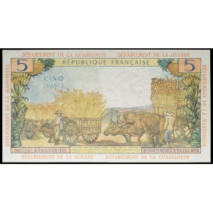ANTILLES FRANÇAISES - FRENCH ANTILLES 5 francs type “Pointe-à-Pitre” ND (1966).…