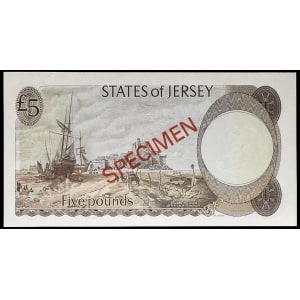 JERSEY - JERSEY 5 pounds avec le portrait de la reine Élisabeth II (SPÉCIMEN) ND (1978).…