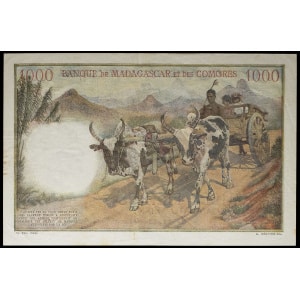 MADAGASCAR - MADAGASCAR Épreuve de recto de 1000 ariary surchargé sur 5000 francs type “Gallieni” (FRONT PROOF…